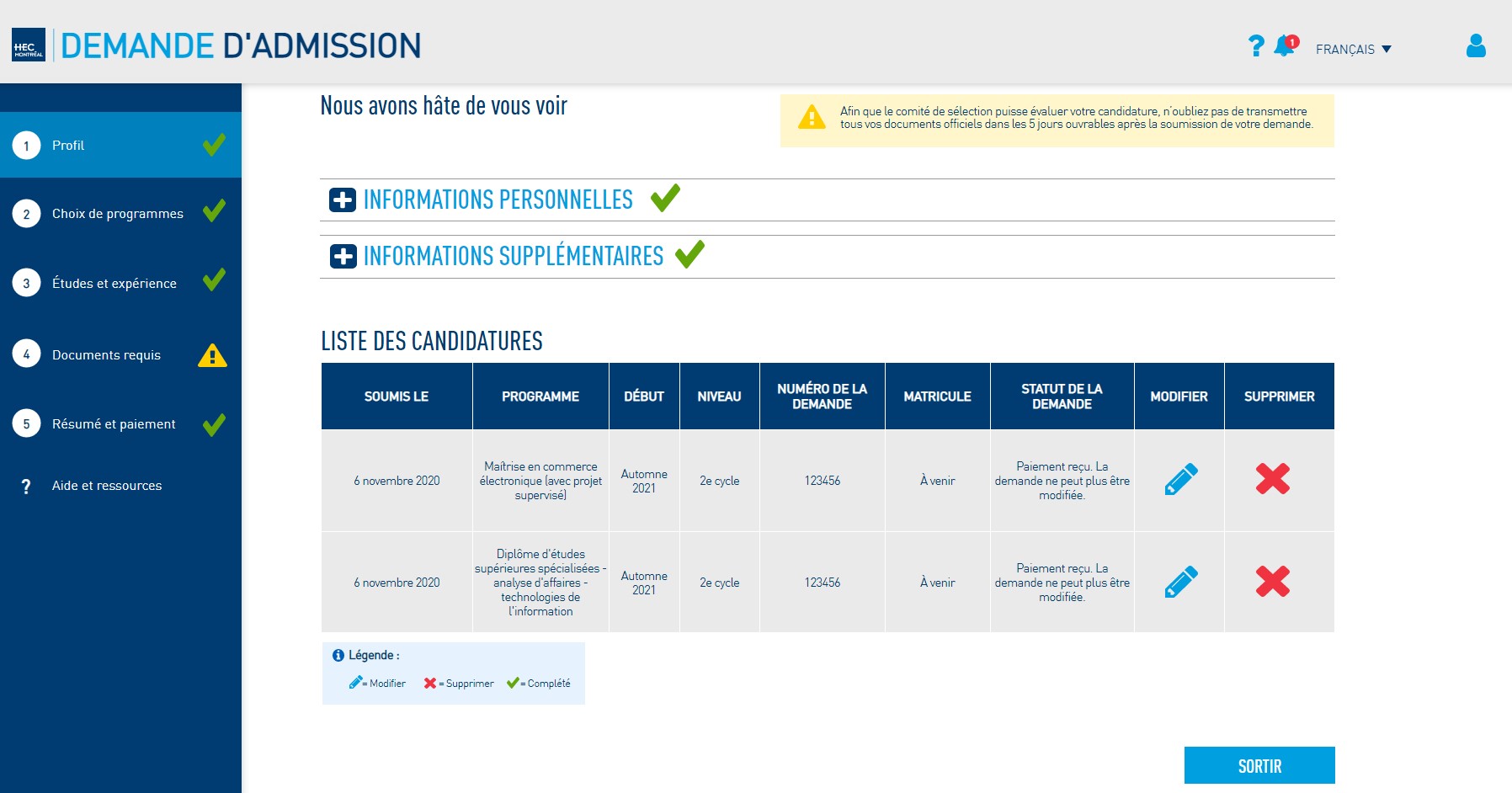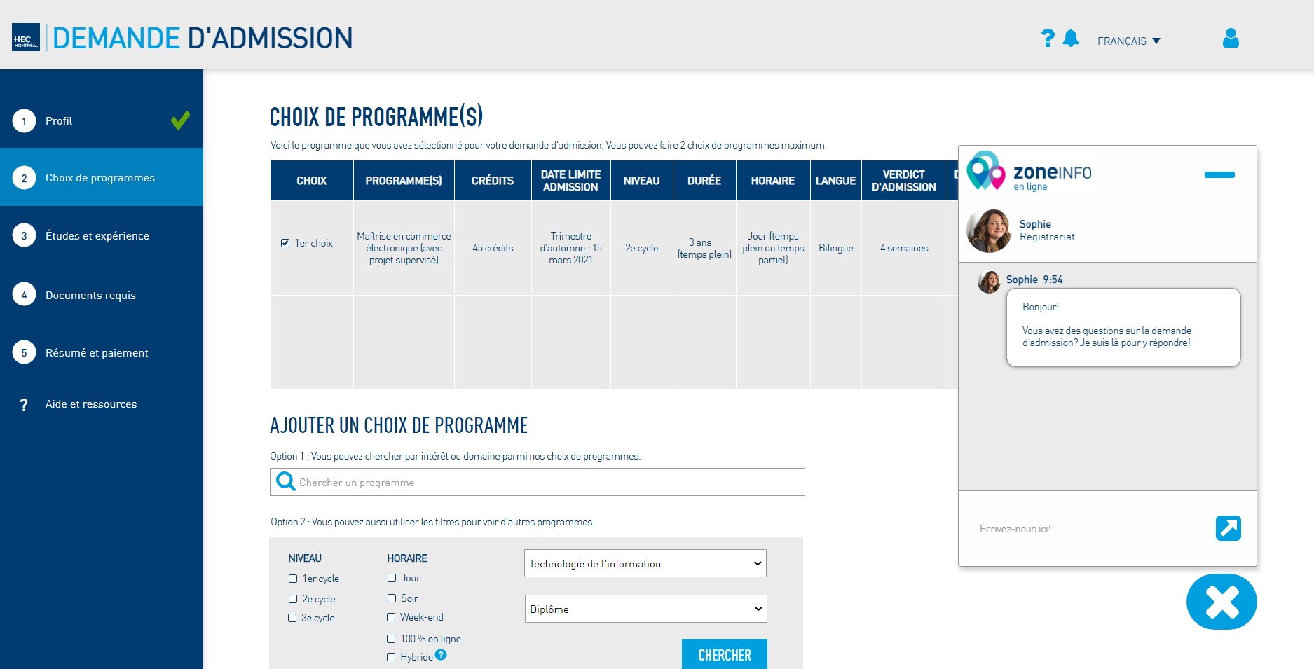 C’est en 2001 que la demande d’admission en ligne a été créée par HEC Montréal à l’aide du progiciel PeopleSoft d’Oracle. Le projet de revoir l’expérience utilisateur de la demande d’admission a été soumis il y a de cela environ trois ans. L’investissement dans le projet a été accepté en 2020 à la condition d’attendre la mise à jour 9.2 de PeopleSoft, afin de pouvoir intégrer de nouvelles fonctionnalités.