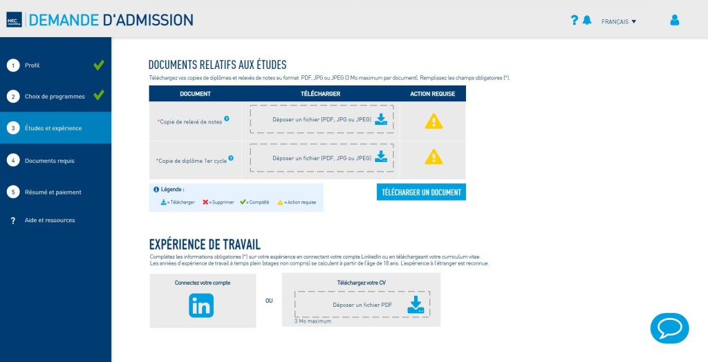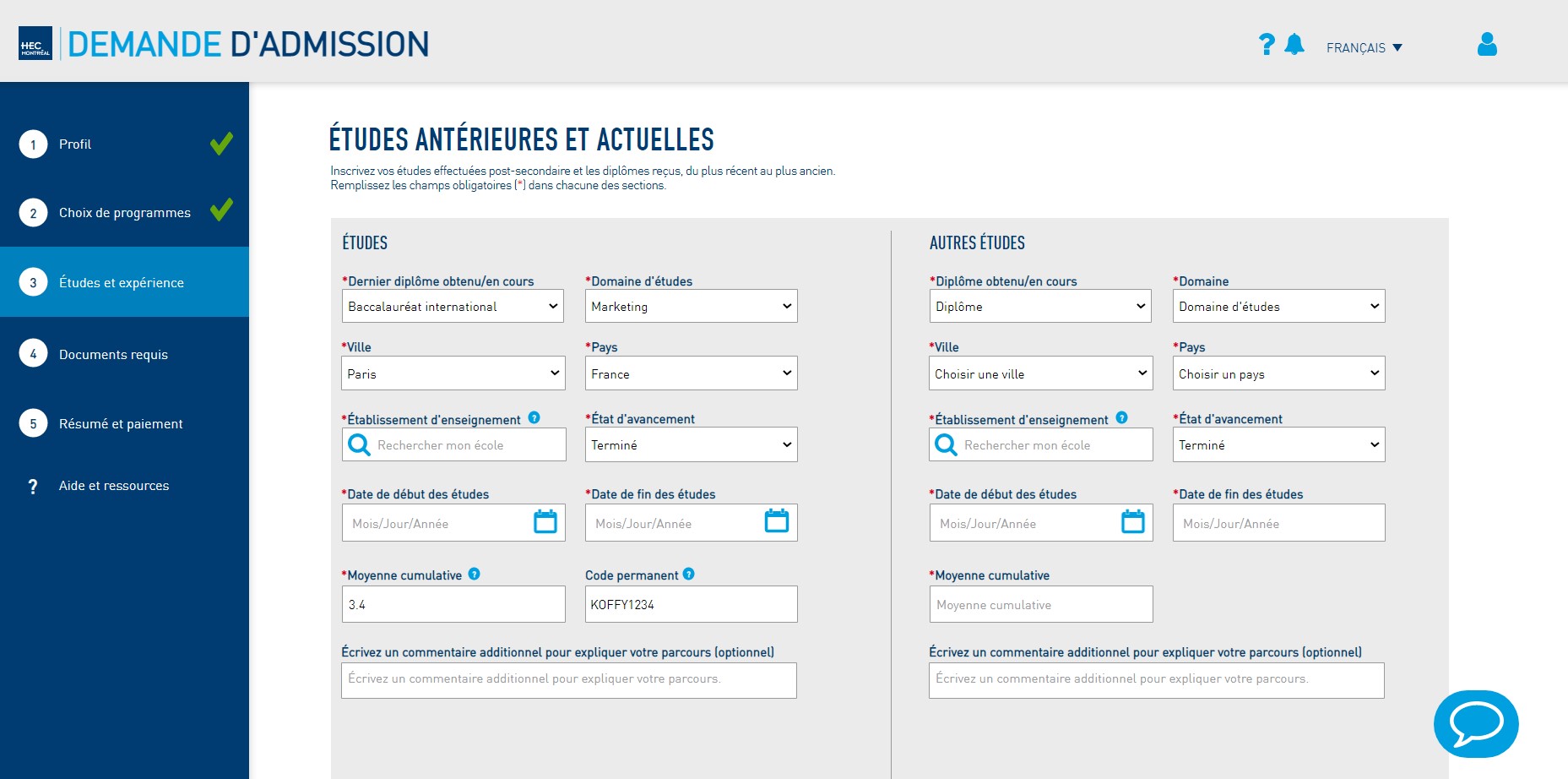 Les étudiants ont partagé quelques points de friction et souhaits : pouvoir déposer les documents requis à même la demande d’admission, avoir aussi accès à la communauté HEC et à des services complémentaires (immigration, logements, carrière, etc.), puis l’information était assez volumineuse et le langage peu compréhensible.