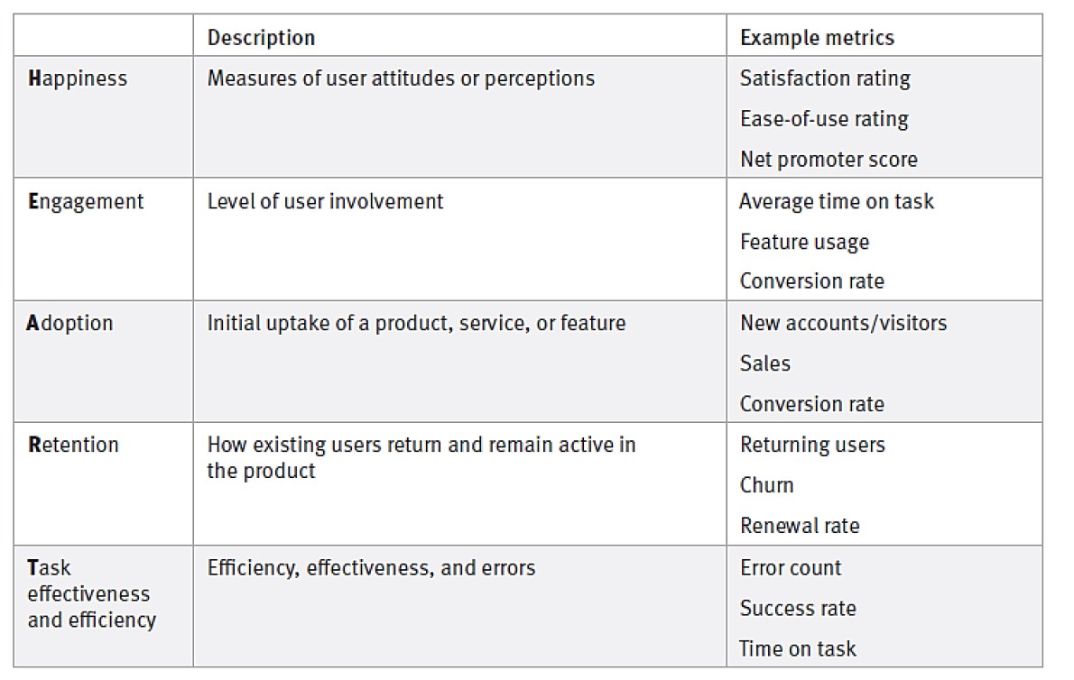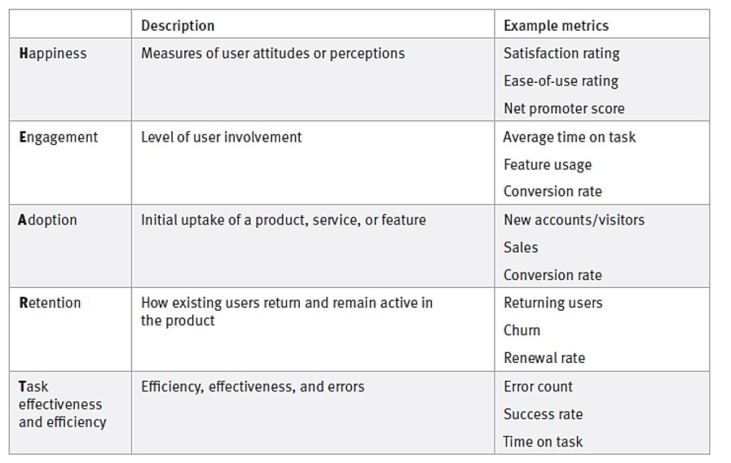 - Mesurer comment un design donné se comporte face à tel KPI et le ROI du UX (exemple – modèle HEART par Google).