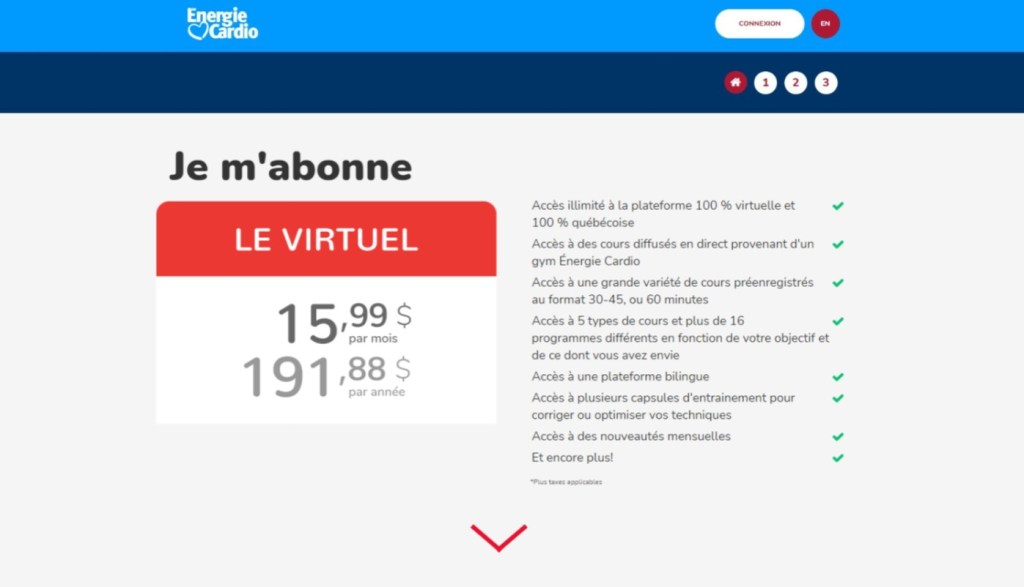 - Il clique sur « Le Virtuel » et peut voir la page avec les informations complètes, puis passer à l’inscription;
