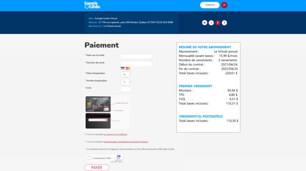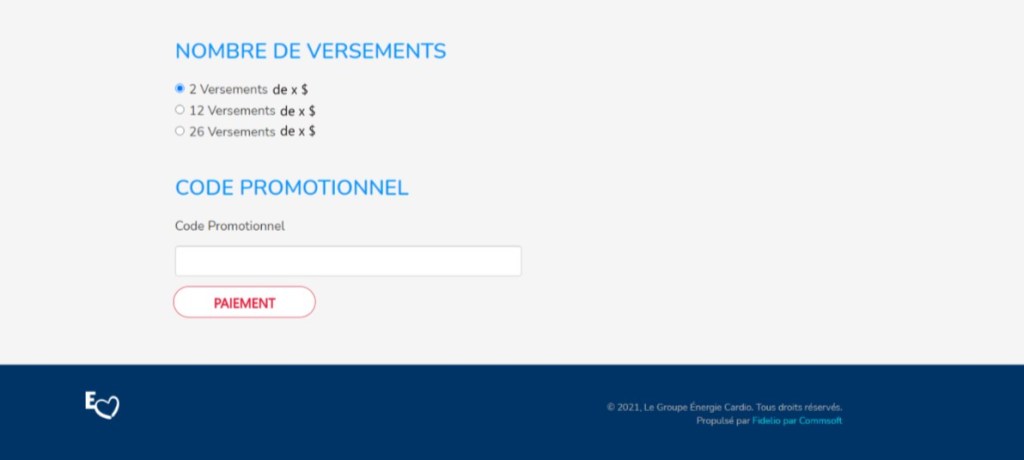 Sur cette page, j’ai modifié les versements, afin que le client puisse choisir le type de versements pour son abonnement.