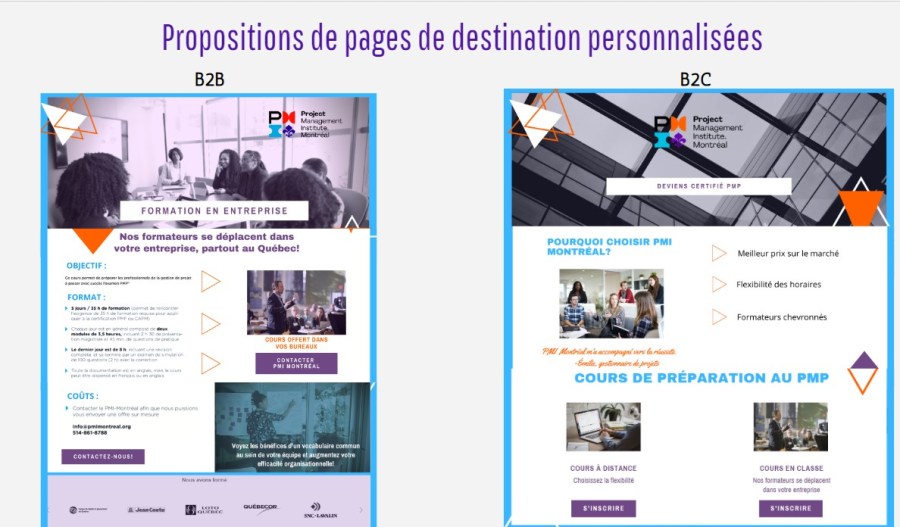 Dans le cadre de mon cours Marketing électronique à HEC Montréal, nous avions à passer en revue les stratégies numériques du PMI Montréal pour leur proposer des modifications UX sur leur site et l’adoption de nouvelles stratégies pour atteindre leurs objectifs de vente de cours en ligne pendant la pandémie.