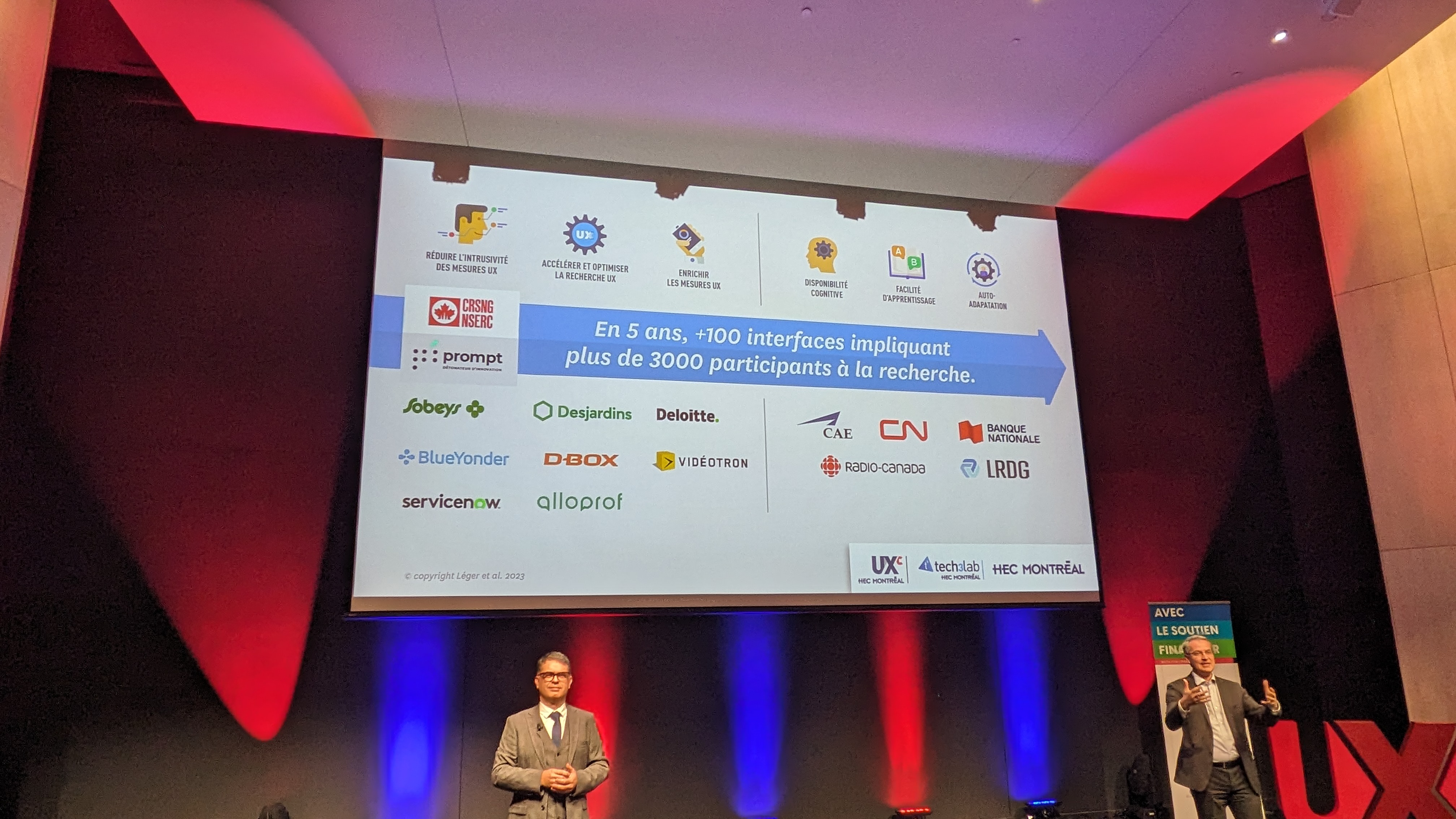 Le Tech3Lab de HEC Montréal, proclamé le plus grand laboratoire public en expérience utilisateur au monde, annonçait le matin même « un financement de 18 M$ sur 5 ans, le plus considérable en matière de recherche dans l’histoire de l’École. Ce soutien majeur permettra d’innover en expérience utilisateur (UX) et d’accélérer le virage numérique des organisations » (lire le communiqué de presse). Une bonne nouvelle en UX et pour propulser les entreprises québécoises en pleine transformation numérique!