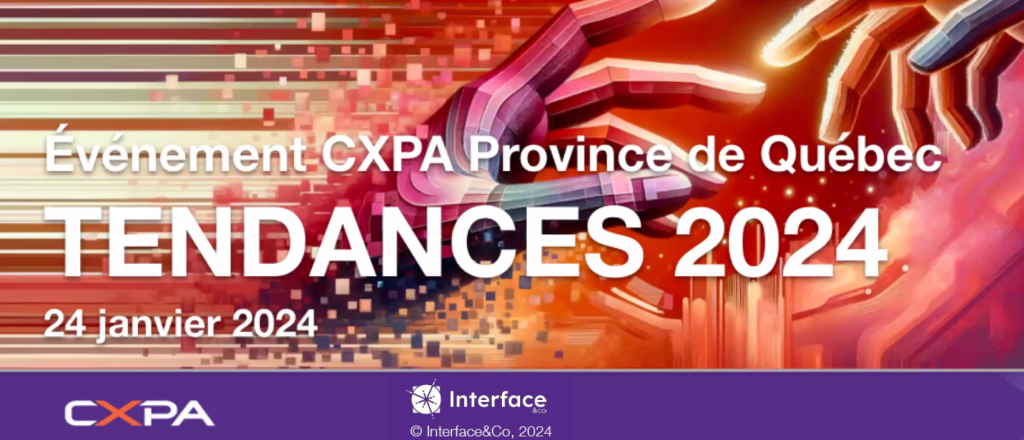 Un grand rendez-vous en ligne que je ne manque plus depuis 2 ans est celui de la communauté CXPA (province de Québec) sur les tendances en expérience client (CX). C’est l’événement annuel où les passionnés d’innovation et de l’évolution constante de l’expérience client se rencontrent virtuellement pour explorer les tendances les plus disruptives et inspirantes qui redéfinissent le CX chaque année!