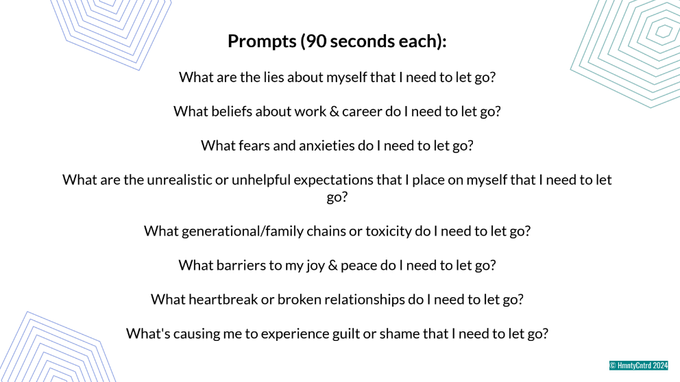 Par la suite, elle a parlé de l’activité du bol brûlant… c’est-à-dire de répondre à des prompts en mode rapide pour permettre à nos premières pensées de sortir afin de nous pousser à agir dans le futur. Question de nous aider à changer les choses.