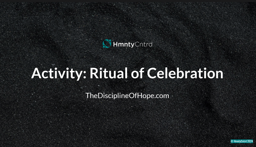 Ensuite, elle nous a parlé de ce rituel de célébration, Qu’est-ce que c’est? C’est une activité individuelle qu’on peut faire, c’est un espace qu’on se donne pour réfléchir. En fait, il s’agit de répondre aux questions pour nous aider à nous recentrer :