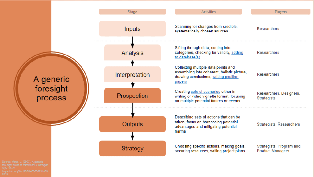 Sam a aussi partagé son processus en prévoyance stratégique avec nous : www.samladner.com/foresight. Un modèle qui vient à point alors que certaines discussions professionnelles auxquelles j’ai assisté tournaient autour des rôles et responsabilités dans certains projets. Je trouve fort inspirant ce modèle pour justement délimiter comment le processus d’innovation prend vie en expérience utilisateur.