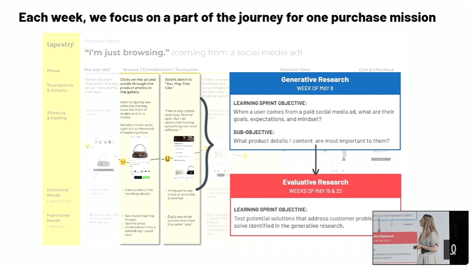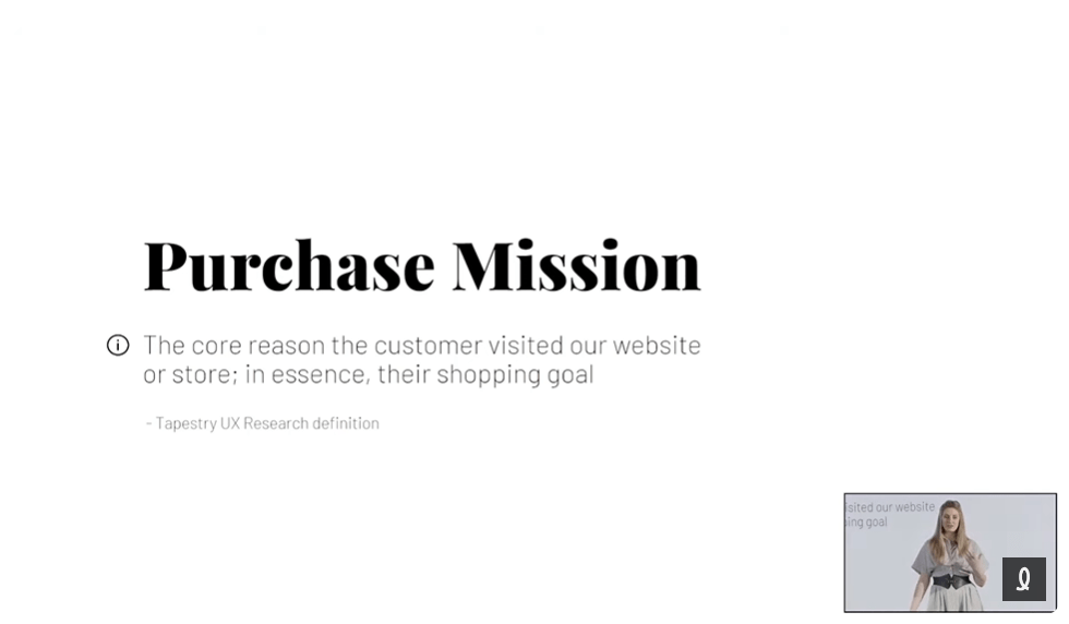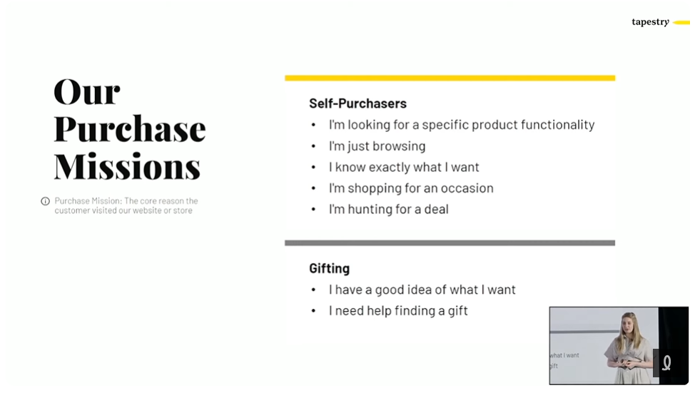 Au final, Tapestry s’est arrêté à créer des parcours selon la mission d’achat des utilisateurs, donc à adapter le parcours d’après diverses missions d’achat. Une différente avenue à considérer en recherche UX!