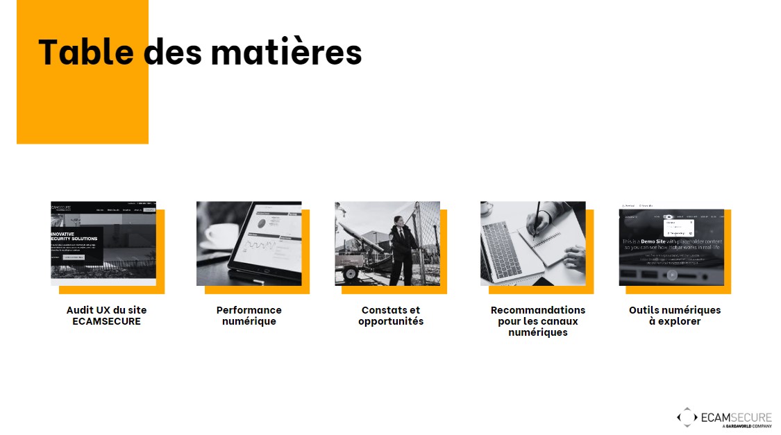 - Audit complet en expérience utilisateur (UX) et des canaux numériques d’ECAMSECURE