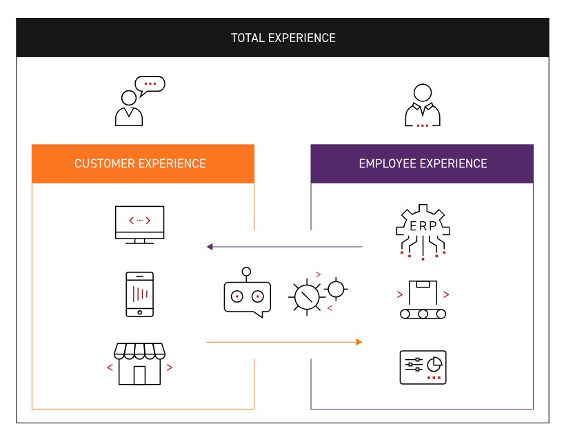 Cependant, n’investissez pas dans le dernier mot à la mode de Gartner parce qu’il l’a dit : il est important d’investir plutôt dans l’expérience totale comme moyen de rationaliser l’expérience du début à la fin. Dans la plupart des cas, les employés et les clients n’interagissent pas directement, mais ils partagent tout de même un lien qui a un impact les uns sur les autres.