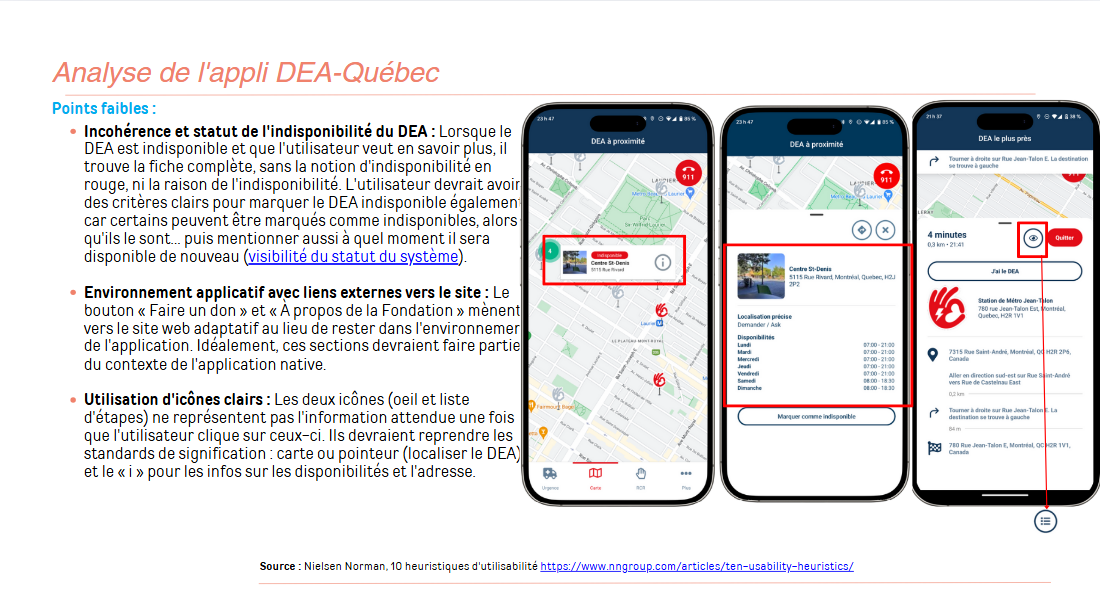 - Recommandations UX et numérique : pistes d’améliorations UX/numérique du site et de l’application DEA-Québec