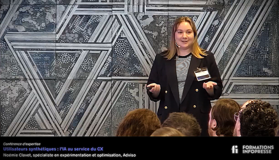 Noémie Clavet, spécialiste en expérimentation et optimisation chez Adviso, a présenté un concept innovant : les utilisateurs synthétiques. Créés à partir de données réelles, ces clients virtuels permettent aux entreprises de tester et d’optimiser leurs parcours clients avant même leur mise en œuvre. Cette approche réduit les risques tout en garantissant une expérience utilisateur plus fluide. Une autre manière innovante d’utiliser l’IA en recherche UX, j’ai vraiment trippé sur cette conférence!