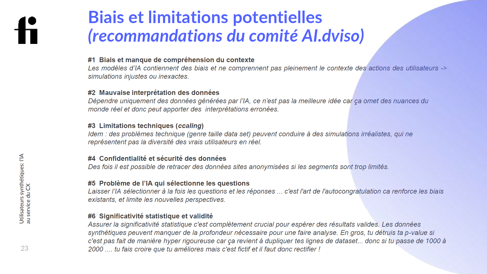 - Sélection biaisée des questions : L’IA tend à renforcer les hypothèses existantes.