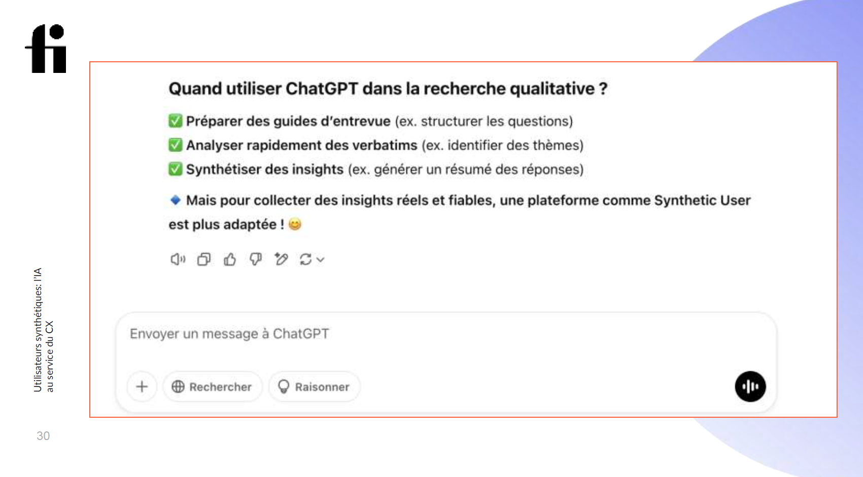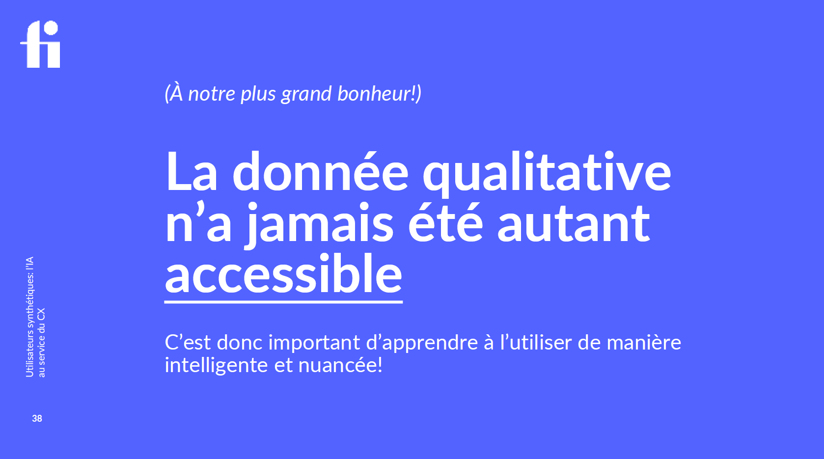 Enfin, l’IA ne remplace pas l’humain, mais le complète. L’approche optimale repose sur la combinaison des insights humains et des données synthétiques, permettant ainsi une vue globale et plus précise des besoins et attentes des utilisateurs.