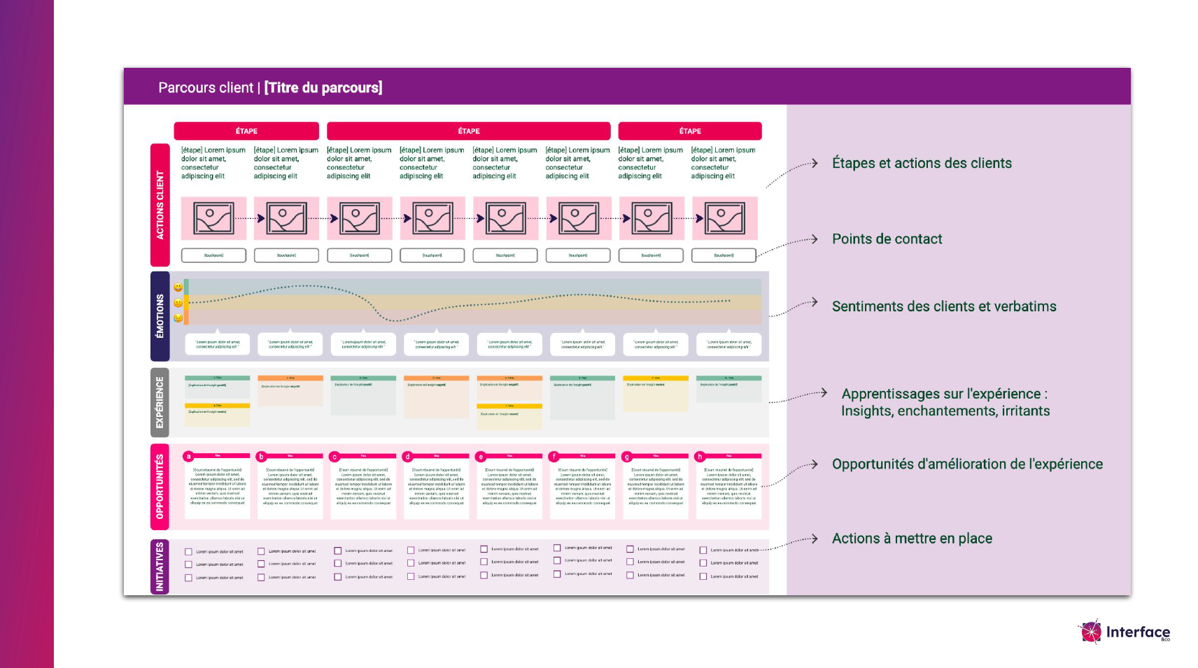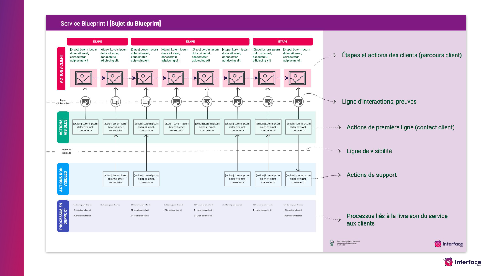 - Ligne d’interaction : Moments de contact direct avec le client.