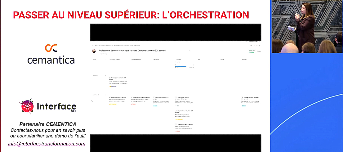 Elle recommande d’orchestrer la transformation avec Cementica pour gérer un programme complet de parcours, les cartographier, les exporter et voir les hiérarchies des parcours, puis créer des personas. Interface&Co sont d’ailleurs partenaires de Cementica et offre l’utilisation de cet outil. Voilà une occasion d’en faire la découverte et de passer du rêve à la réalité!
