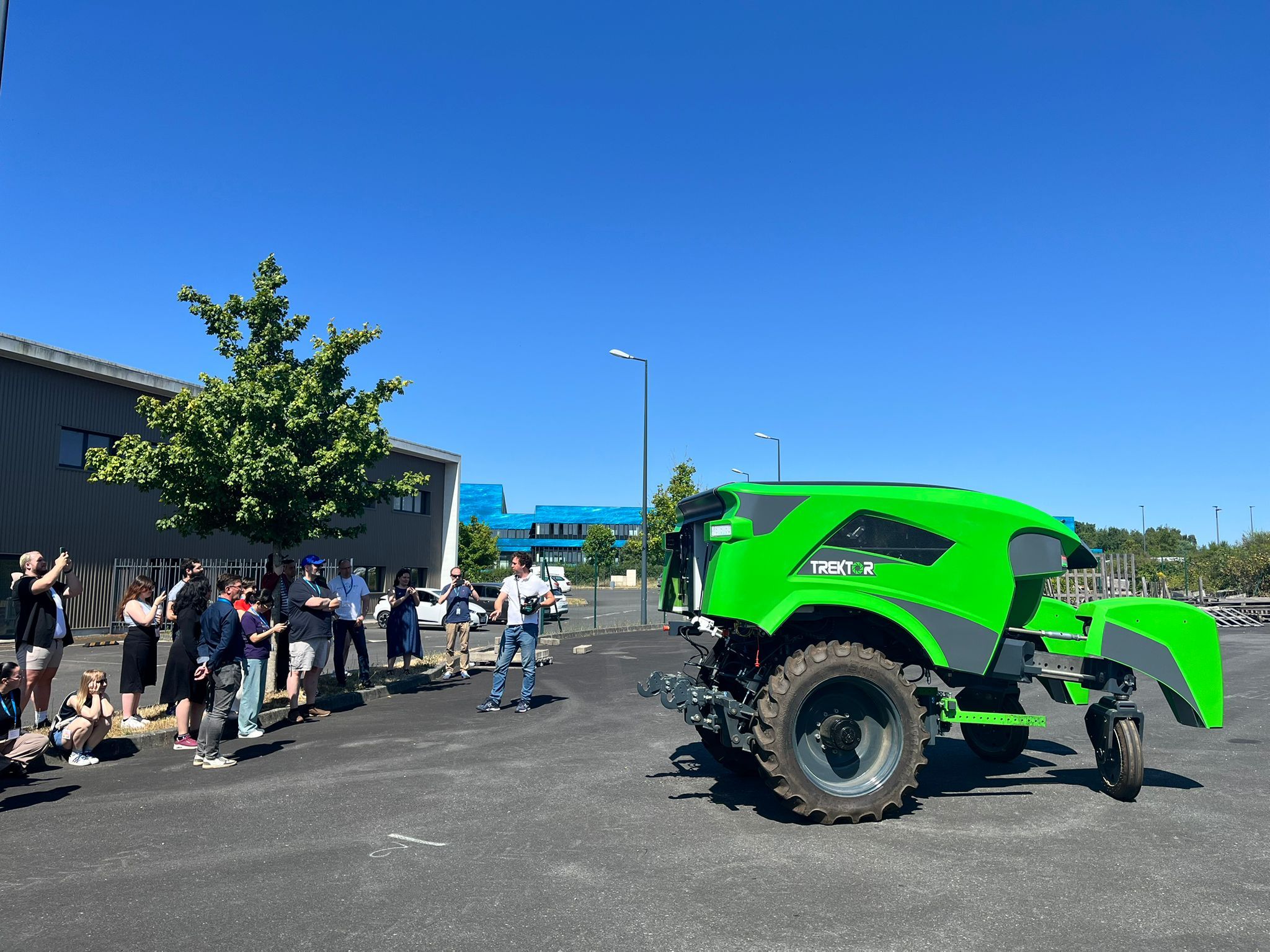 1) Le Trektor robotique : L’une des premières journées à Nantes, nous avons eu l’occasion d’assister à la présentation de l’innovateur derrière le projet de tracteur robotique, le Trektor. Même qu’on a eu une démonstration (bon, dans un stationnement, mais tout de même!). Le tracteur est autonome, polyvalent et aide les agriculteurs dans leurs tâches quotidiennes, donc optimise leur productivité, en plus de réduire l’empreinte carbone. J’ai mentionné à l’inventeur qu’il y aurait de grandes occasions d’association avec le Canada. Je vois vraiment le potentiel pour nos agriculteurs d’ici! En espérant que ce projet innovateur se rende aux oreilles de nos gouvernements.
