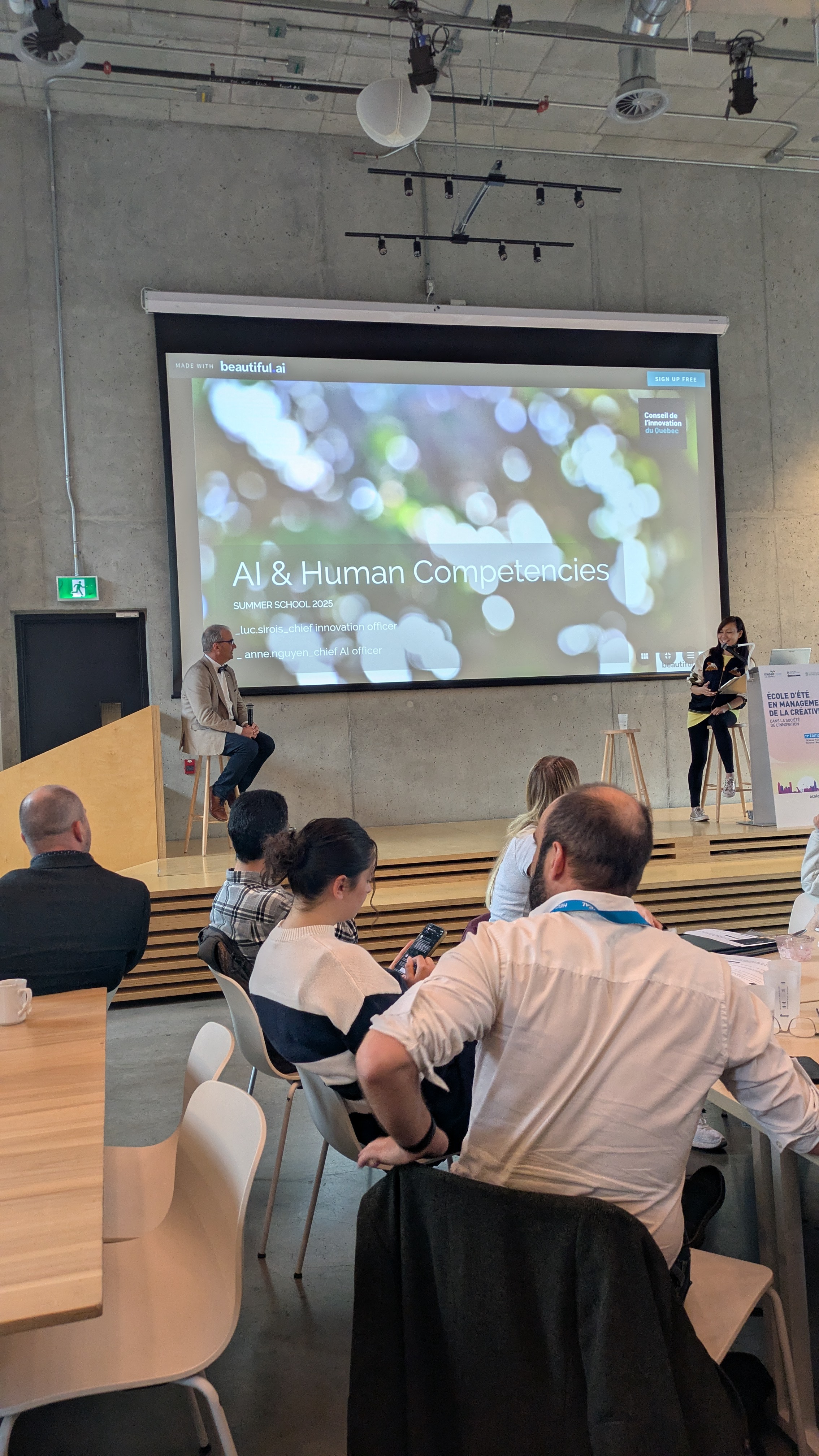 3) La présentation de Kathy Malas et celle de Luc Sirois : L’École d’été a eu la chance immense de recevoir ces deux grands de l’innovation au Québec, soit Kathy Malas pour toutes ses réalisations pour le Pôle d’innovation et d’IA en santé au CHUM notamment, maintenant au CIUSSS du Centre-Ouest-de-l’Île-de-Montréal, puis Luc Sirois, l’innovateur en chef du Québec au Conseil de l’innovation du Québec.