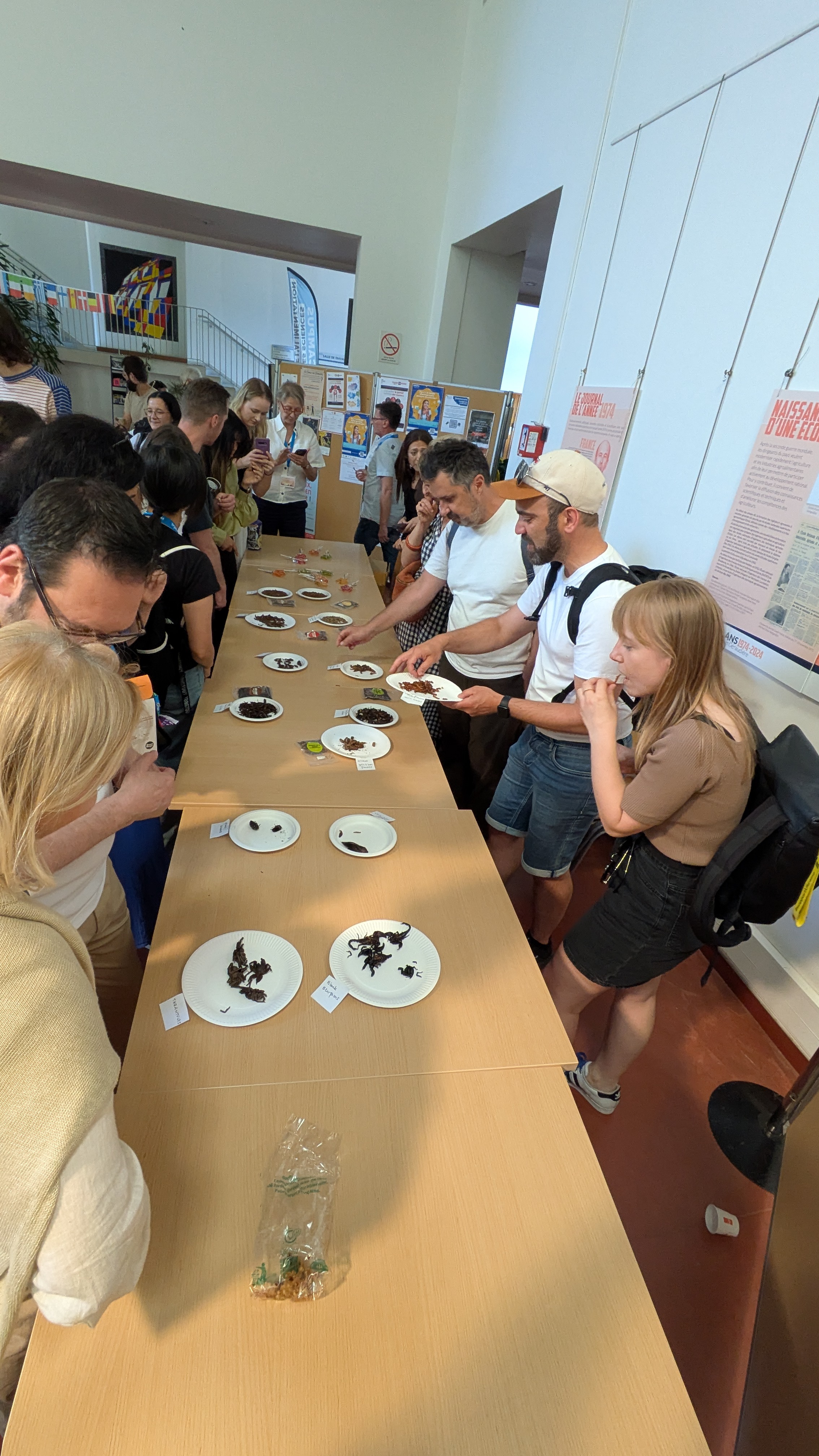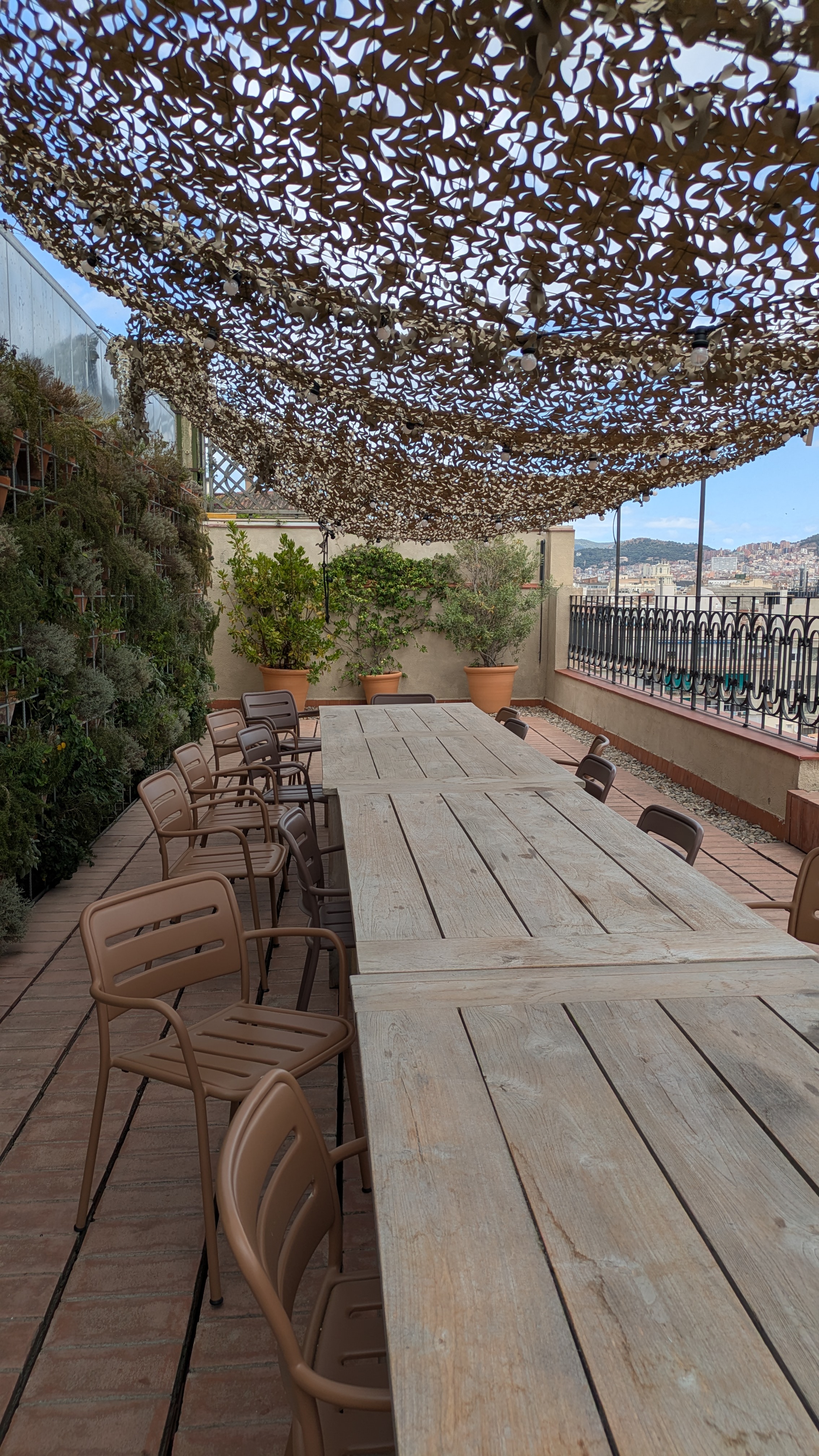 C’est au Hub Social Barcelona que la cérémonie s’est déroulée, lors de la 17e journée de l’École d’été. Un joli endroit revampé dans l’ancienne usine de farine Lluis Campins (1873), maintenant un espace coopératif ouvert aux organismes, militants et aux experts engagés pour l’équité et la justice sociale. À la cérémonie, nous étions tous exténués, mais fiers d’avoir accompli cette expérience. On a dû dire aurevoir à quelques-uns qui prenaient l’avion avant le dernier souper de départ.