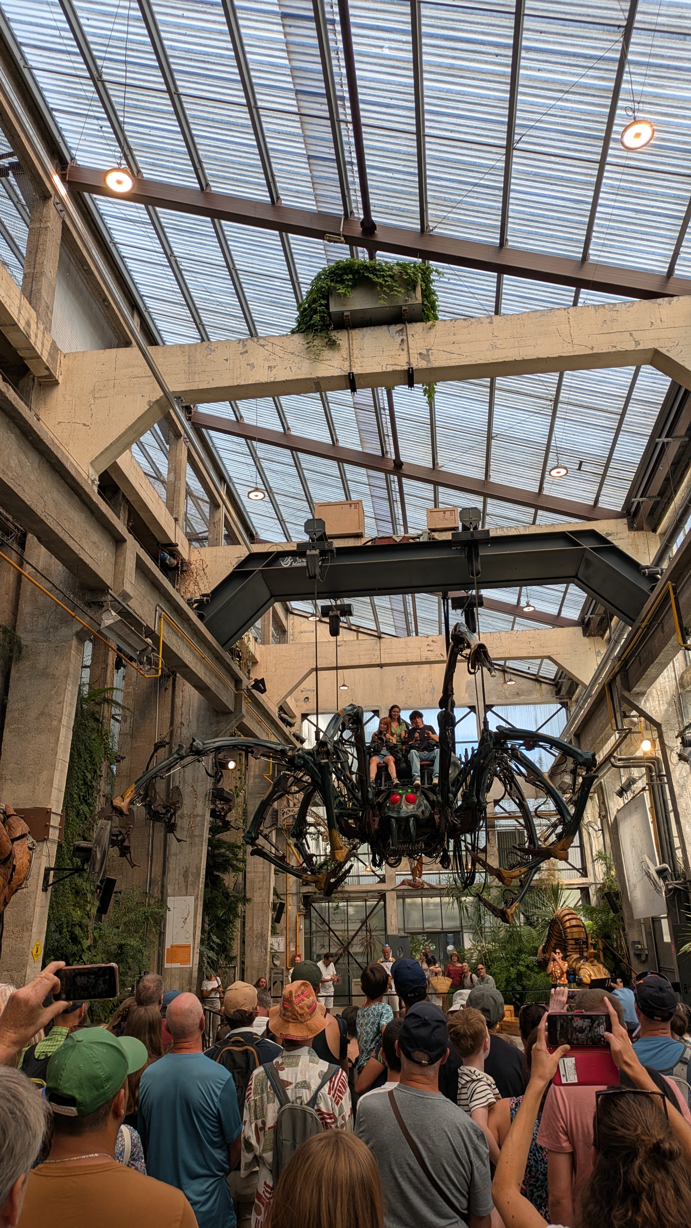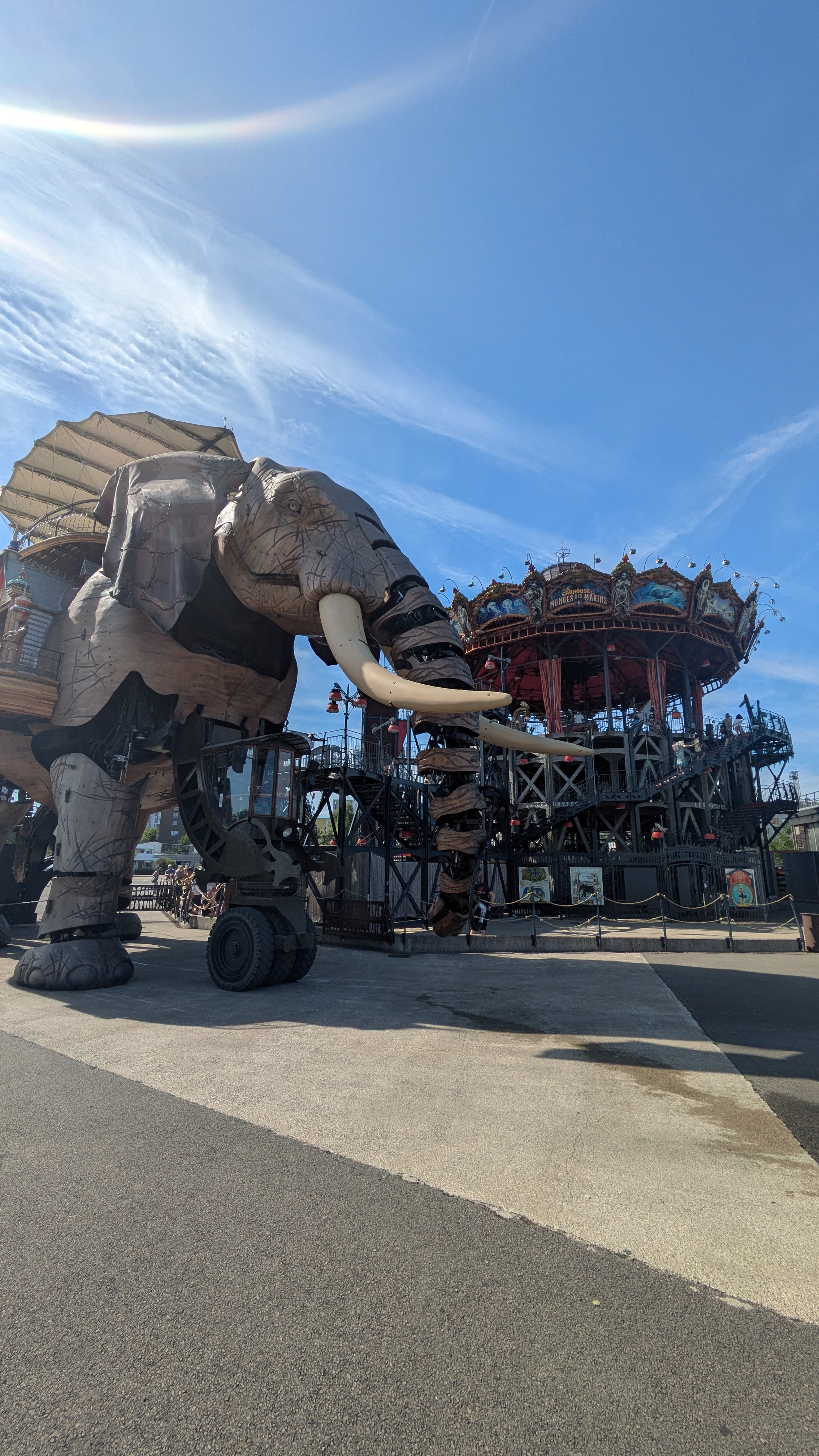 3) L’expérimentation des Machines de l’île : Nous avons aussi visité les fameuses Machines de l’îles de Nantes, la plus grande attraction de la ville. « Né de l’imagination de François Delaroziere et Pierre Orefice, il se situe à la croisée des « mondes inventés » de Jules Verne, de l’univers mécanique de Léonard de Vinci et de l’histoire industrielle de Nantes, sur le site exceptionnel des anciens chantiers navals. » Une expérience immersive où l’on retourne en enfance dans le carrousel avec des créatures géantes, tout en regardant l’immense éléphant téléguidé qui s’approche du site en arrosant les passants.