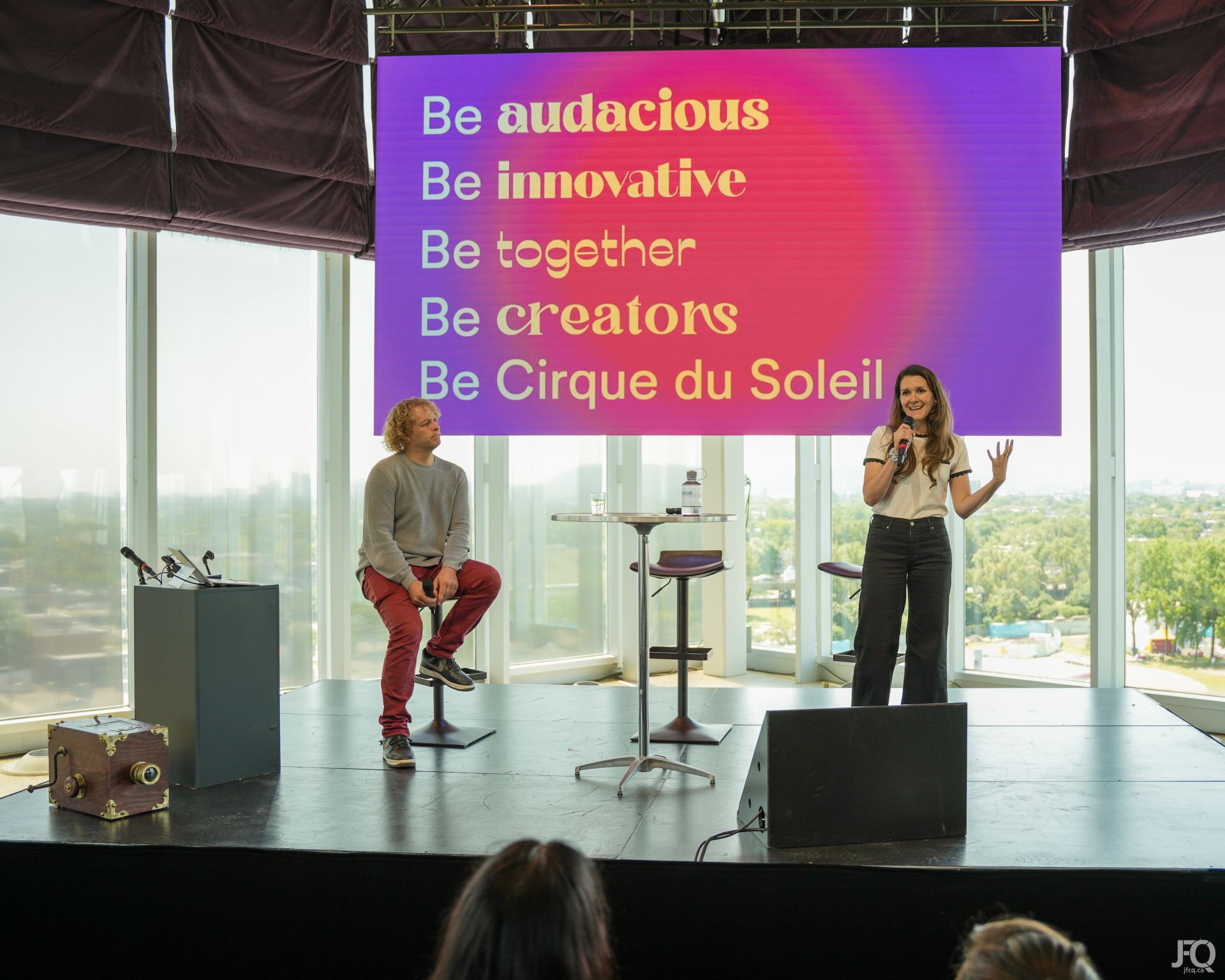 L’une des présentations marquantes à Montréal a été celle de Caroline Boucher Boudreau sur le Innovation Fest. C’est quoi? C’est un projet pilote en innovation que le Cirque du Soleil a testé cette année. Le concept : créer un espace de recherche et développement interne, ouvert à tous les départements pour ceux et celles souhaitant tester des numéros, de la nouvelle technologie dans leur chorégraphie, etc. Le projet pilote a eu lieu au printemps 2025, pendant 3 semaines. Il y avait un espace de création, de test et de design thinking à la fois disponible pour les artistes. Les équipes ont soumis des idées, certaines ont été sélectionnées, puis celles-ci ont pu créer et tester ces idées dans cet espace. Par la suite, sous forme de cabaret, les équipes ont présenté leur idéation devant public (les divers départements). Résultats : nouvelles synergies au Cirque, nouvelles idées pour les spectacles, plus de collaboration et peut-être une future édition Innovation Fest intégrant les communautés externes!