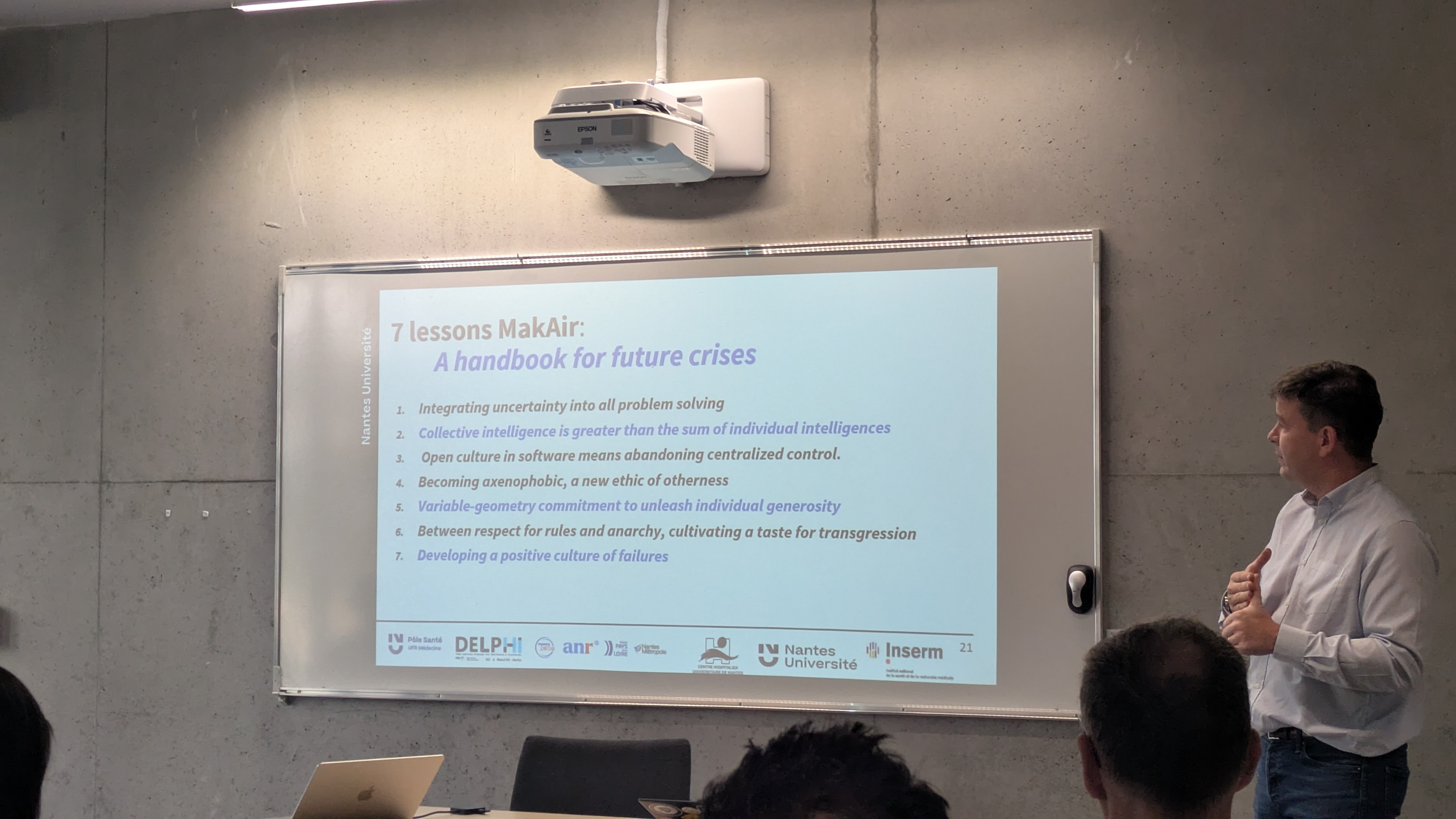 4) Les 7 leçons du projet MakAir : La présentation du professeur Pierre Antoine Gouraud m’a aussi impressionnée par la grande créativité du projet. Né en réponse à la crise sanitaire de la COVID, MakAir est un respirateur de soutien vital développé pour être produit à grande échelle avec des matériaux simples, en France et à l’international. Porté par une communauté soudée et des valeurs partagées, ce projet open source a marqué une 1re mondiale en réalisant une ventilation réussie sur un patient dans le cadre d’un essai clinique approuvé.