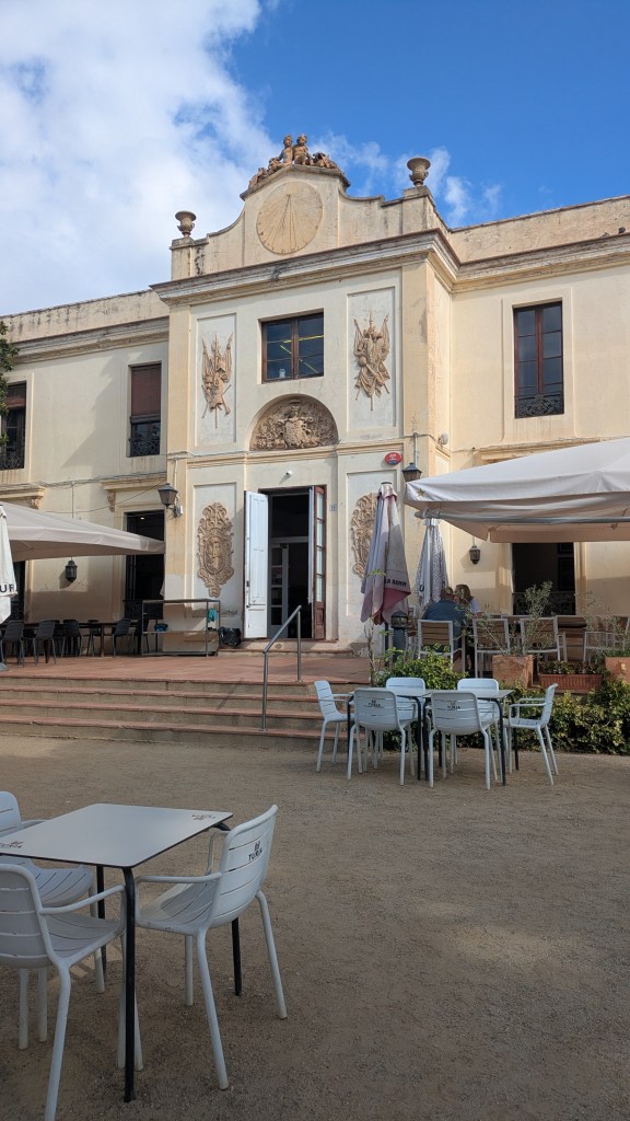 3) La dégustation de vins à la Casa Mari-Casino de Tiana : L’École d’été nous a offert un bon moment de dégustation de vins (blanc, rouge et des bulles!), accompagnés de bouchées préparées pour harmoniser le tout en bouche. Ce moment a permis d’échanger entre nous, de relaxer, de rire, de discuter et de réseauter. Le lieu était magnifique. L’entité du Casino de Tiana a été créée en 1910. Ce bâtiment protégé du XVe siècle, de style gothique et renaissance, est considéré comme un bien culturel d’intérêt local. Entouré de jardins et offrant des vues sur la Serralada de Marina et la mer, l’Espai Can Marí est un lieu pour l’organisation d’événements pour entreprises entre autres.