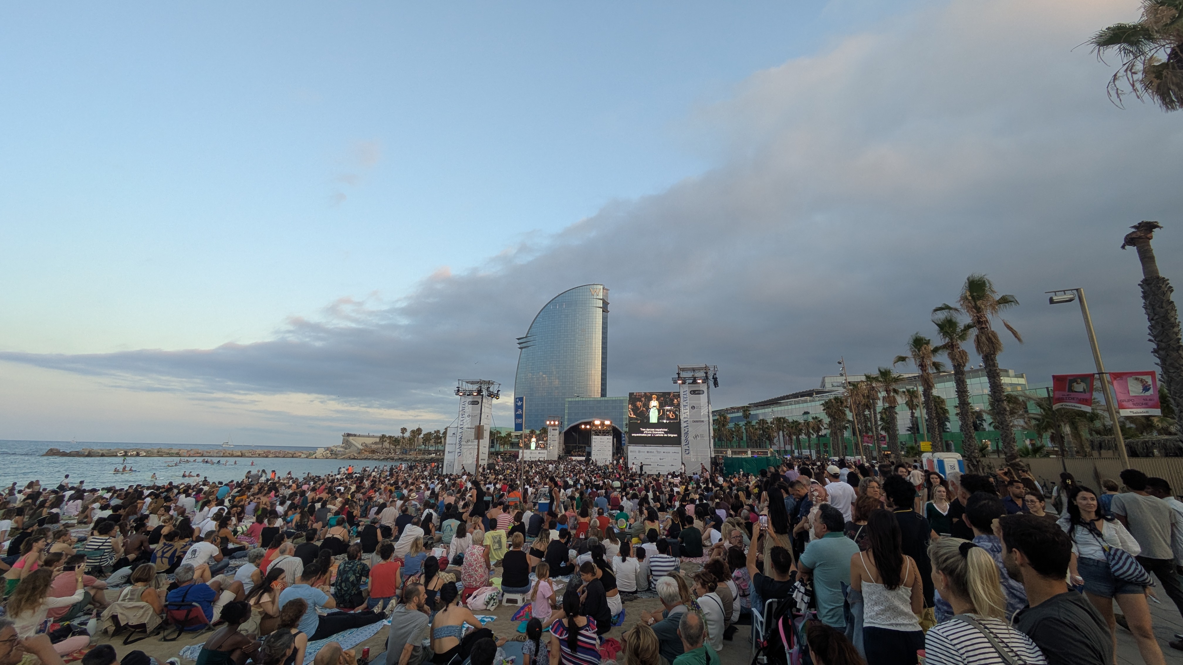 5) Le concert gratuit à la plage Sant Sebastià : J’en ai profité pour découvrir la Clàssica a la platja, une formule un peu comme l’OSM l’été à Montréal avec ses concerts gratuits, notamment au Parc olympique. Mais là, c’est encore mieux, près de l’une des plus populaires et belles plages de Barcelone. C’est la version symphonique de « Mar i Cel », la légendaire comédie musicale de Dagoll Dagom sur une musique d’Albert Guinovart qu’on a pu voir et entendre.